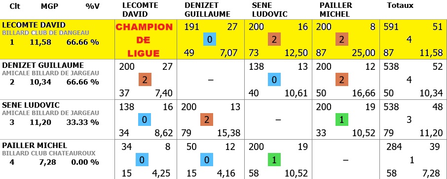 Champion de ligue Libre R4, Ronan Cartier du Billard club Orléans.