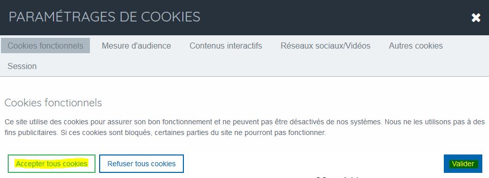 , apparaitra alors une fenêtre pour accepter les cookies comme indiqué ci-dessous. Des lors que les cookies ont été acceptés, le captcha apparaître.