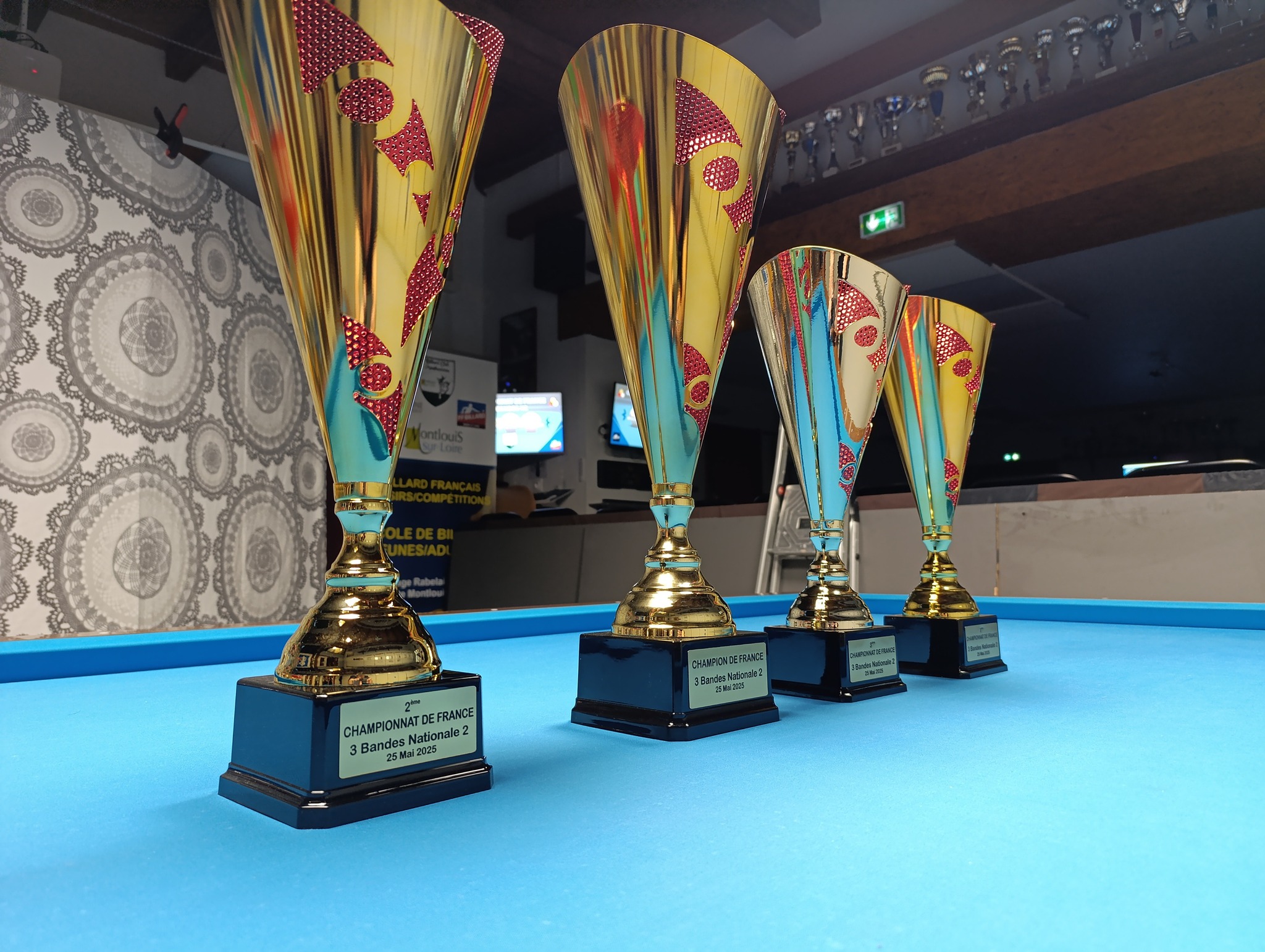 Honneur au vainqueur. A Gravelines, Laurent Pariot s'adjuge le titre de Champion de France Bande N1, à l'issue d'une finale où Laurent s'est accroché pour rester au contact de son adversaire, est parvenu à égaliser, et s'impose en prolongation ! Quelle ténacité !