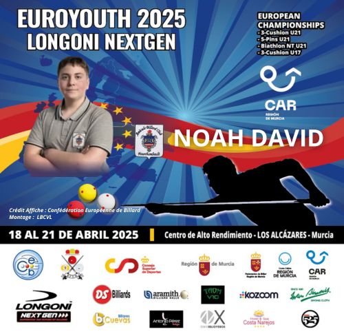 Le jeune espoir du club de Fourchambault, Noah David, a été sélectionné par la direction technique de la Fédération Française de Billard pour participer aux Championnats d’Europe 3 Bandes U17.